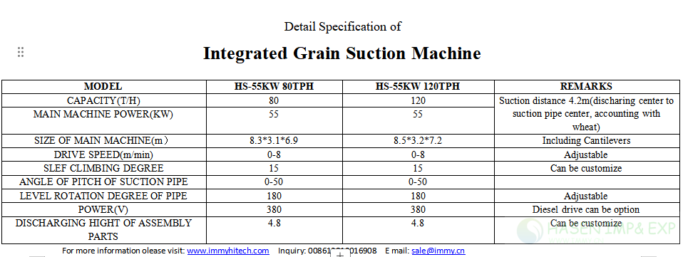 and according to the customer's needs, series out of the hourly output of 30T, 45T, 60T, 80T, 120T and so on many models, fixed grain suction machine